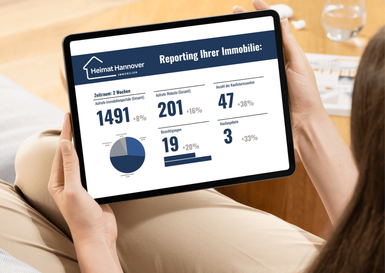 Durch regelmäßige Aktivitäten- und Besichtigungsberichte halten wir Sie stets über die Anzahl der Besichtigungen, aktuellen Interessenten und vorliegende Angebote auf dem Laufenden. So sind Sie jederzeit bestens über den Verkaufsstand informiert.